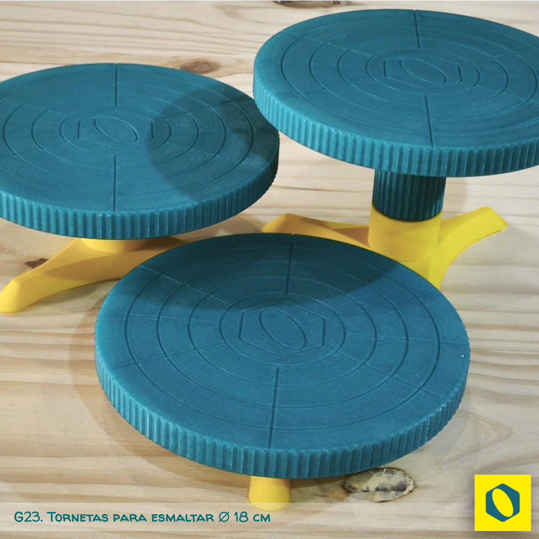 Estas tornetas tienen un diámetro de 18 cm y están disponibles con alturas de 4, 8 y 12 cm.