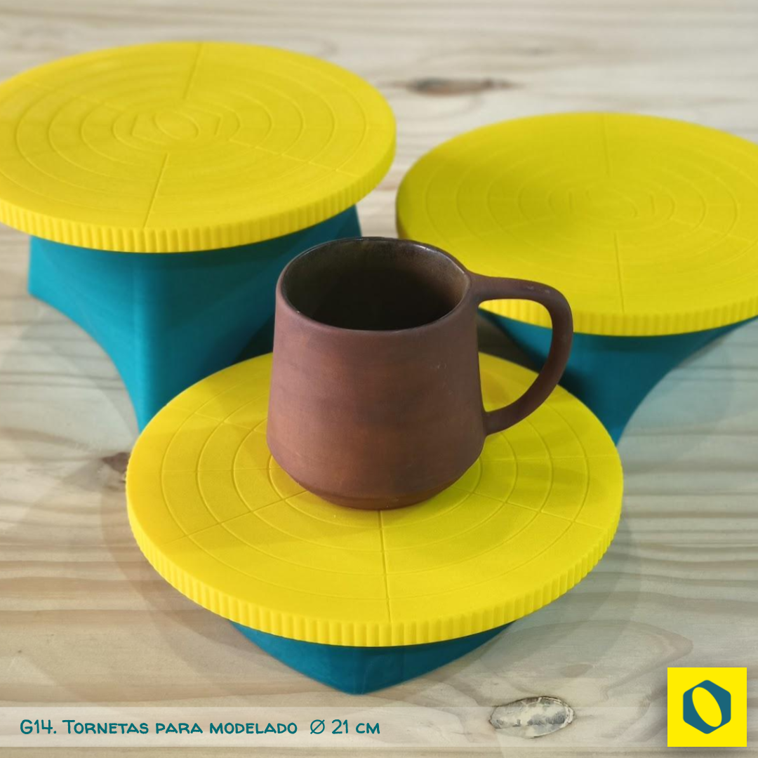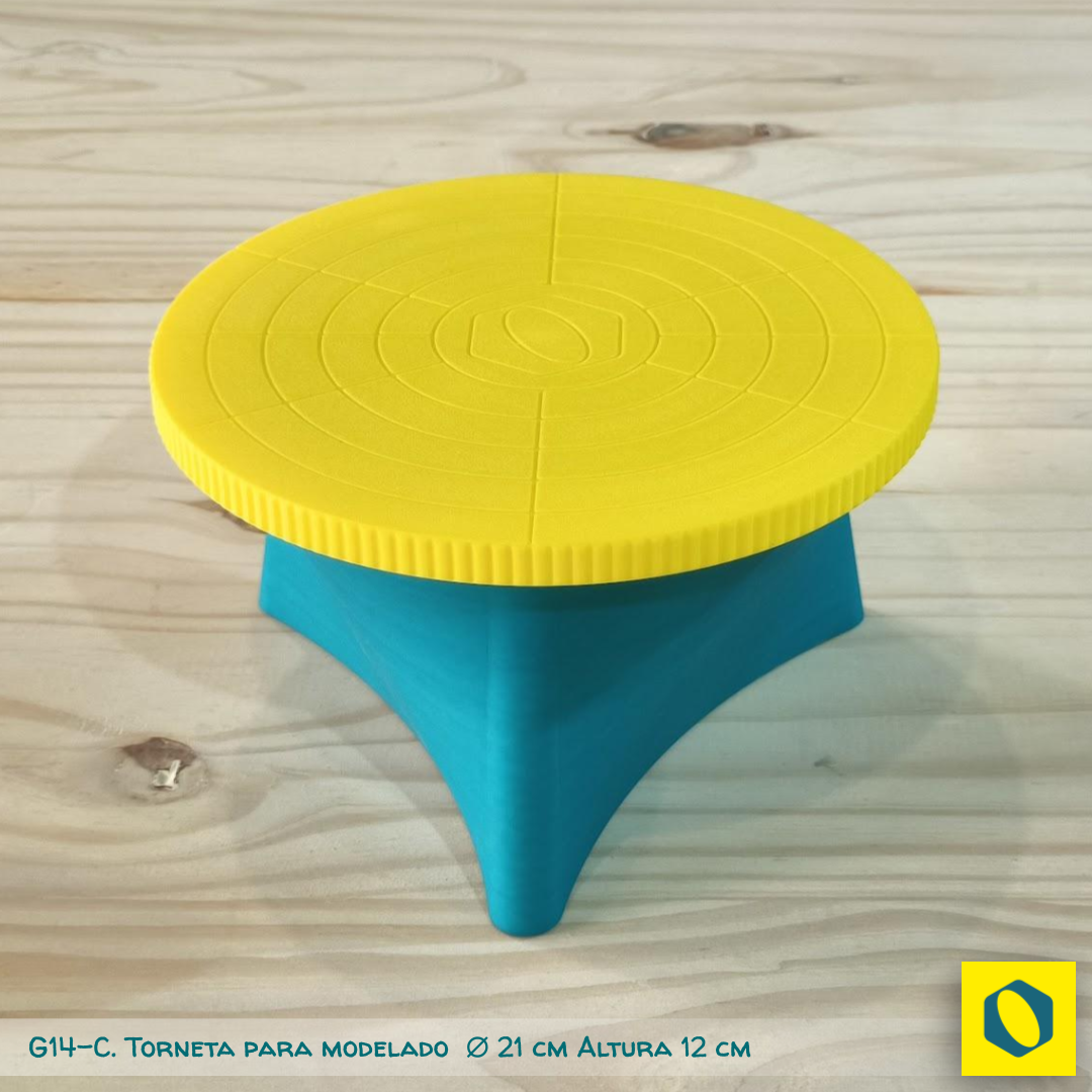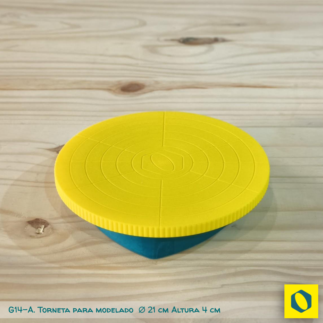 Cuando modelás, esgrafiás o decorás no querés que tu pieza se mueva con el más mínimo impulso pero sí querés que gire suave y establemente. Ese es el comportamiento de esta torneta sin eje ni rodamiento que gira sobre bolillas de acero ubicadas entre la base y la platina.